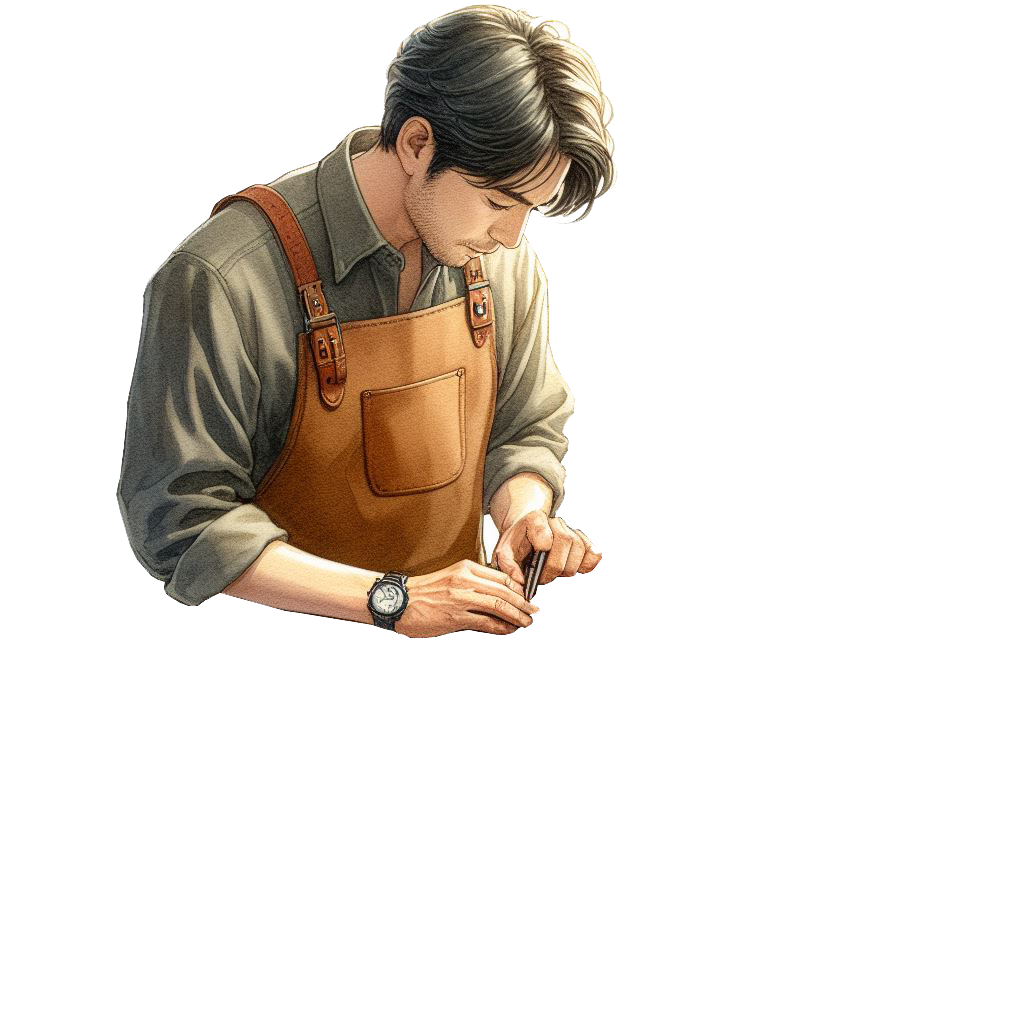 ご依頼の際にカラー見本を同梱いただけましたら、それを元に調合いたします。但し、ご提示いただいたカラー見本と100%同じになることは殆どありません。その理由としては、原則、赤・青・黄・黒・白の皮革用塗料を職人の経験と勘、センスによって調合をいたします。赤と白と黄色を何グラムづつ配合すればOKなどの配合マニュアルは基本存在いたしません。そのため僅かな差異がでてしまう場合がございます。予めご理解いただけますと幸いです。